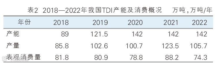 近年来,我国TDI的产量不断增加,国内TDI消费规模维持在80万吨左右。随着海外市场的不断开拓,我国TDI出口逐年增加。