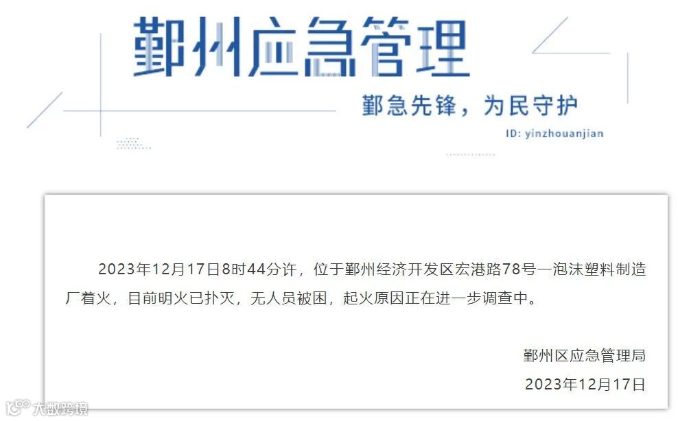 鄞州经济开发区一泡沫塑料化工厂着火