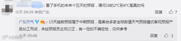 对于上述预报结论,广州市气象部门12月5日回应表示,上述预报结论源自天气APP使用的中长期数值预报,该类预报通常集合多家全球数值天气预报模式,客观预报产品加工而成,未经预报员主观订正。