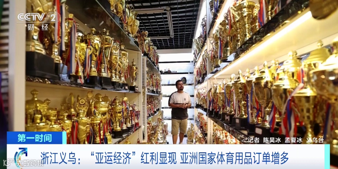 义乌一家专门生产奖牌奖杯的企业,去年,得益于世界杯的带动卖出了超百万个奖杯和奖牌,业绩同比增长50%。而今年,杭州“亚运热”同样给企业带来了生意。眼下,这家企业的生产设备已经马力全开,但依然跟不上订单需求。