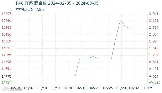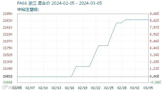 PA66表现则更为亮眼,2月月均价格为22500元/吨,较之1月份的均价21000元/吨上涨1500元/吨,月涨幅达7.14%!春节前后的这波行情上涨主要受成本面支撑,且业内人士对后期市场行情走势预期向好,炒涨氛围浓厚。