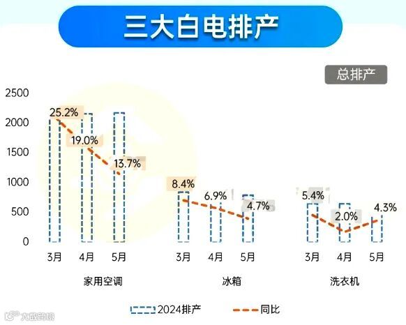 2024年3月洗衣机内销排产343万台,较去年同期内销实绩增长5.3%。