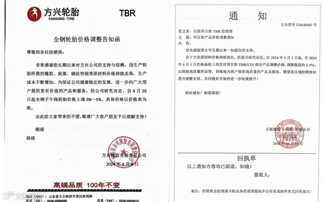 2月至今,已有75家轮胎公司发布了90份涨价通知,包括方兴橡胶、徐州徐轮、玲珑轮胎、卡之力轮胎、肇庆骏鸿实业、安徽坤斯通轮胎、远新轮胎等,涨幅在2%-5%左右。不少企业发布了2张以上的涨价通知,企业告知了10%的价格涨幅。涨价产品涵盖了乘用车轮胎(PCR)、卡车轮胎(TBR)、轻型轮胎(LTR)、工业轮胎(OTR)、叉车轮胎、摩托车轮胎、实心轮胎、内胎等系列。