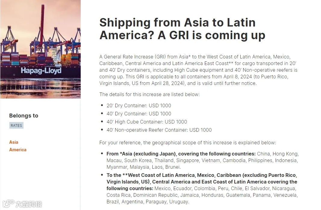 陆运成本增加的同时,水运价格也在飙升。包括马士基、达飞、赫伯罗特等在内的头部船公司陆续发布涨价通知,宣布上调多条亚洲出口航线的运费。上涨金额最高达2000美元,与当前运价相比涨幅接近70%。中远海运集装箱运输也发布了涨价通知,今年4月1日至4月14日,从远东(包含中国在内的亚洲东部地区)运往美国和加拿大的海运价将大幅上涨1000至2000美元。
