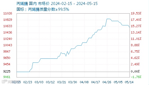 尽管上游走势有支撑,但丙烯腈开工率提升,加上实际需求偏弱,丙烯腈5月以来走势难以维继,出现下滑。