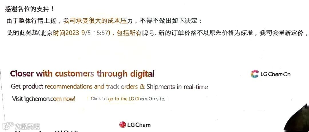 LG:9月5日下午15时,LG化学宣布:由于整体行情上扬,公司面临了很大的成本压力,决定对公司所有牌号重新定价。