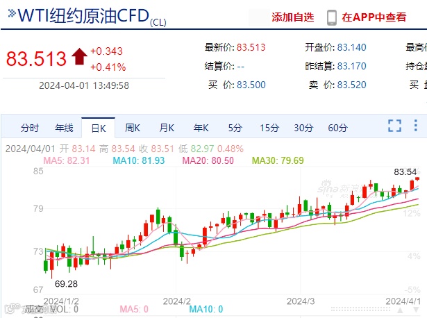 截至发稿,WTI4月原油上报价涨至83.51美元/桶,布伦特原油报价87.32美元/桶!并且,摩根大通表示,这可能在4月就将布伦特油价推高至90美元,到5月达到90美元中位,到9月接近100美元,后续涨势如何,还需多多关注近期国际市场情况。
