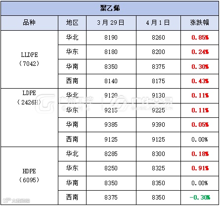 原油涨万物涨,相信在油价的刺激下后续化市或又会出现一波小涨,今日,PP、PE价格全面上涨!橡塑大宗榜集体翻红,ABS、PA66、PMMA涨势喜人!