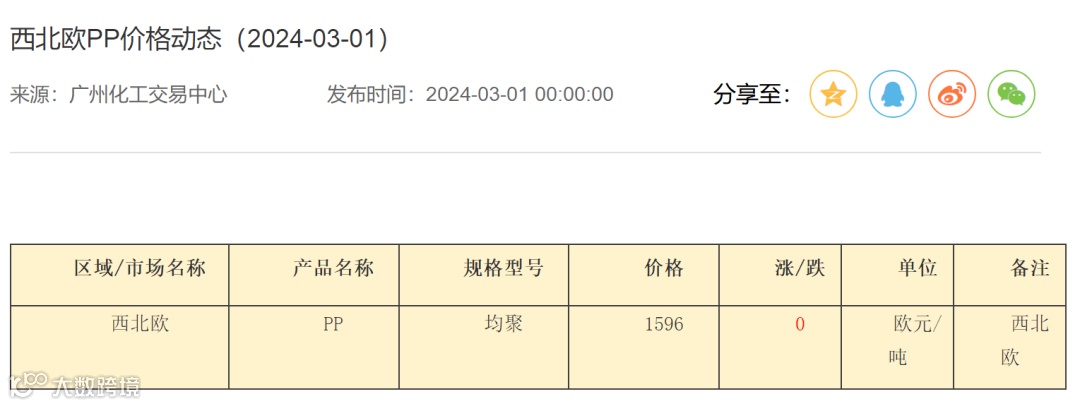 2024年欧洲聚丙烯价格逆势上涨2个月,截至3月1日,西北欧均聚PP中间价为1596欧元/吨,折合人民币12467元/吨,较元旦前的1020美元/吨(约合人民币7342元/吨),上涨5125元,涨幅高达69.8%。