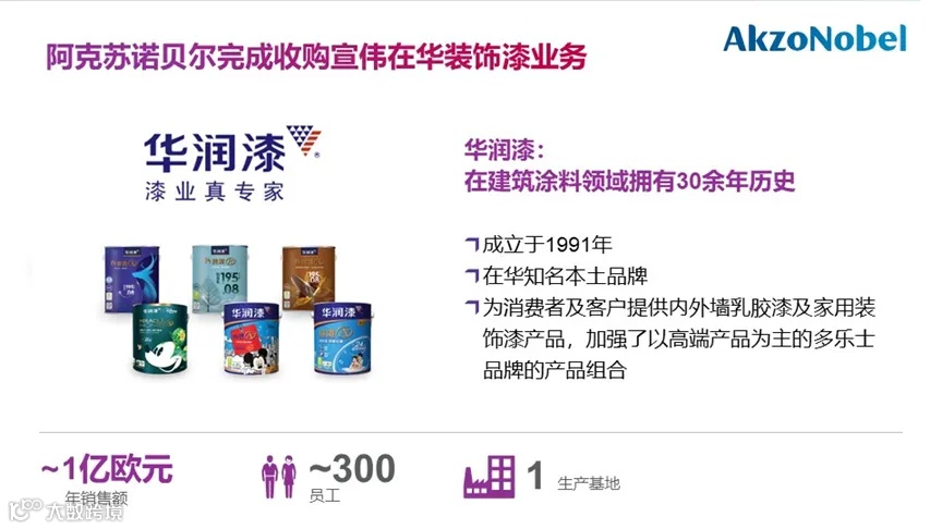 宣伟将旗下子公司N92 Menomonee Falls出售给了美国涂料制造商钻石沃格尔(Diamond Vogel),还将包括华润漆在内的中国建筑涂料业务进行了剥离,卖给了阿克苏诺贝尔。