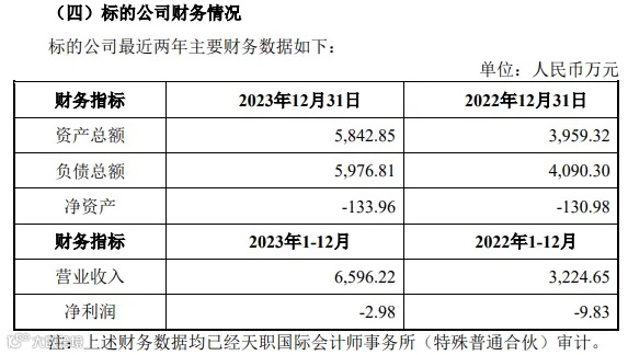 长沙松润是蔚来、理想、吉利、广汽、小鹏、一汽红旗等众多国内外知名整车及汽车零部件等企业的供应商,主要为汽车企业提供涂料等多类别系统化解决方案的新型功能涂层材料。公告中提及,标的公司(长沙松润)近2年的净资产和净利润均为负值,其中2023年年底净资产为-133.96万元,2023年全年净利润-2.98万元。