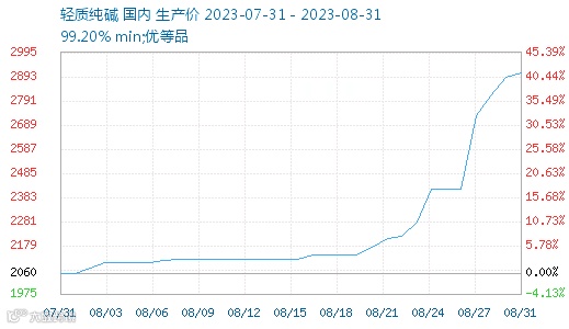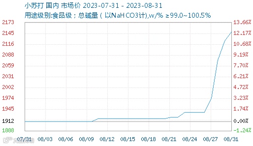 另外,受上游纯碱暴涨因素影响,其下游溴素、小苏打价格也出现上涨,其中,溴素近月内涨幅超22%,价格上涨超4500元/吨;小苏打一月内涨幅超12%。