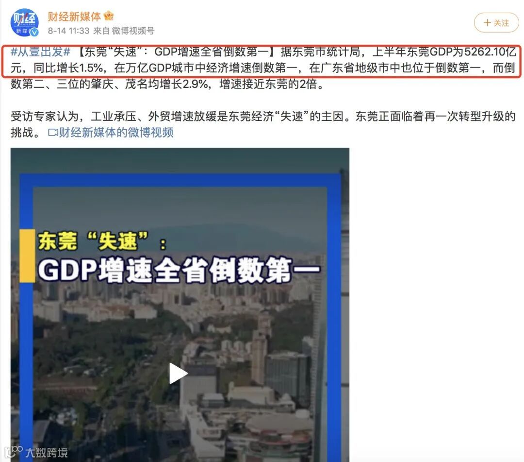 东莞经济增速为何“失速”?背后的原因和困局分析