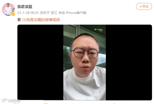 28日凌晨,涂磊曾在其微博发视频澄清。