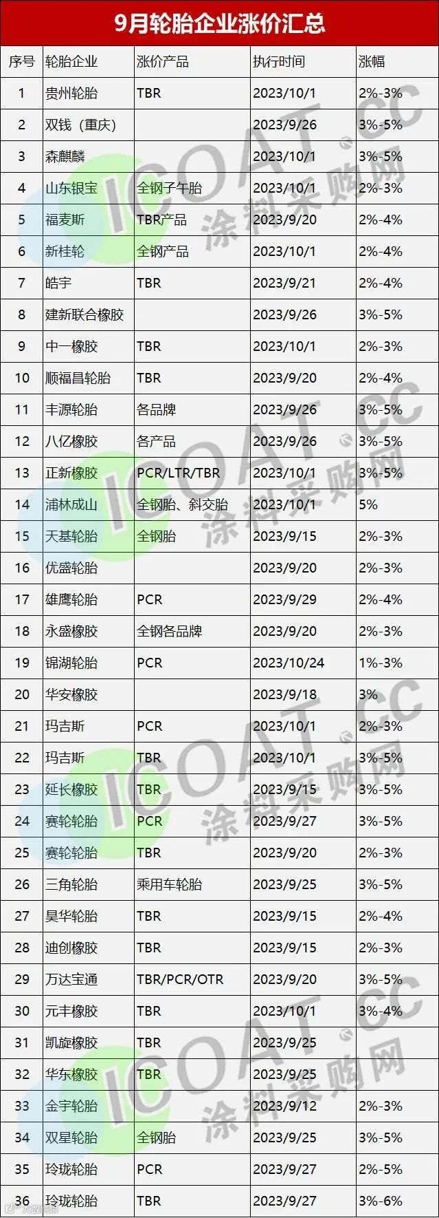近期,40多家轮胎企业发布涨价通知,其中有针对全钢胎的,也有针对半钢胎的。正新、玛吉斯、赛轮、玲珑等企业更是先后发布多张涨价通知,对多品牌、多品类产品涨价,涨幅在3%-5%左右。