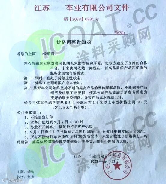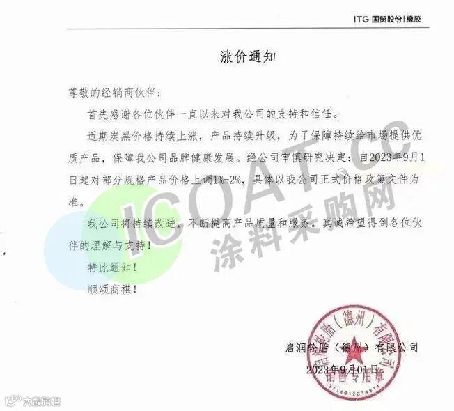 泉州市冠兴环保科技:从2023年9月13日20:00订单起,产品价格在原有价格基础上上调3%。