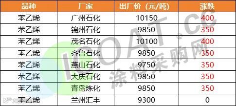 9月以来,苯乙烯涨超1000元/吨,期货市场日内大涨3.45%,多家化工企业苯乙烯出厂价大涨350-400元/吨,广州石化和茂名石化出厂价已涨破10000元/吨。