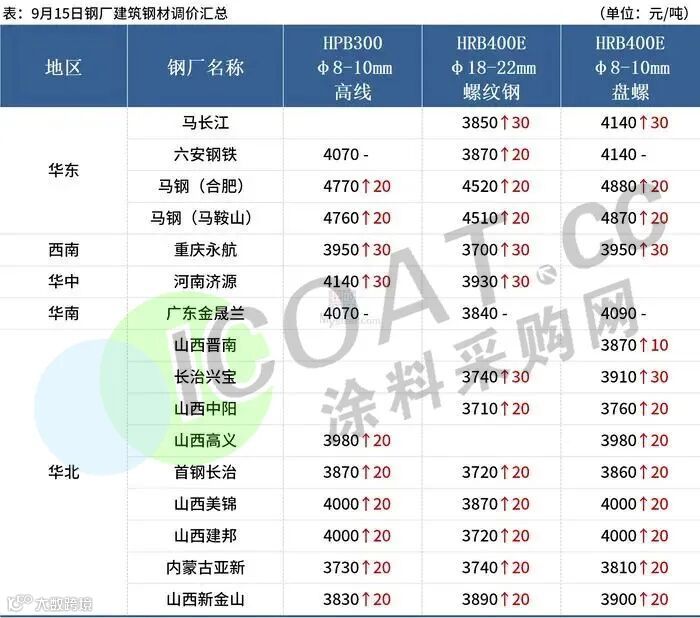 上周五(9月15日),全国累计15家钢厂发布调价信息,其中14家钢厂涨价,整体调幅在0-30元/吨。