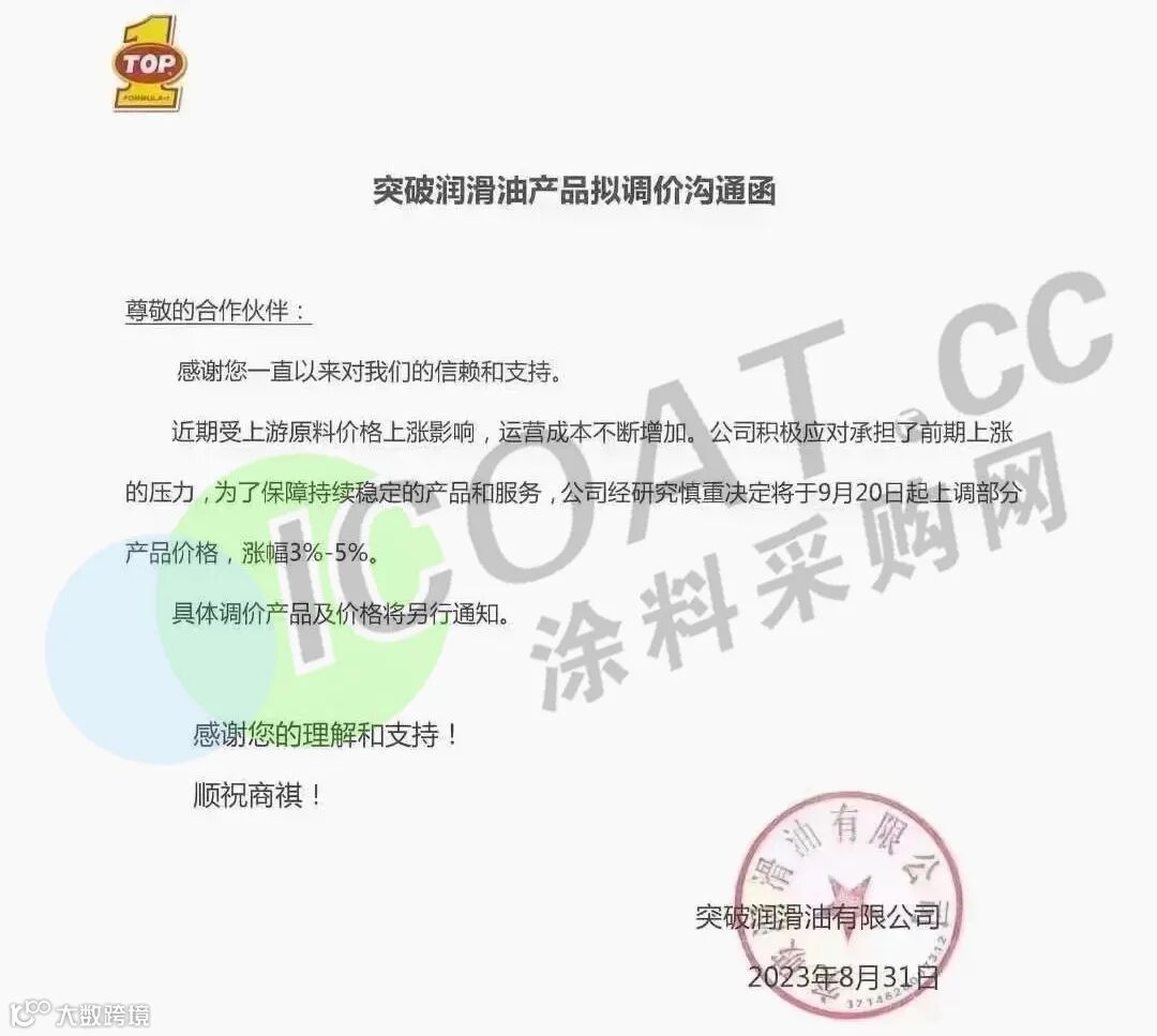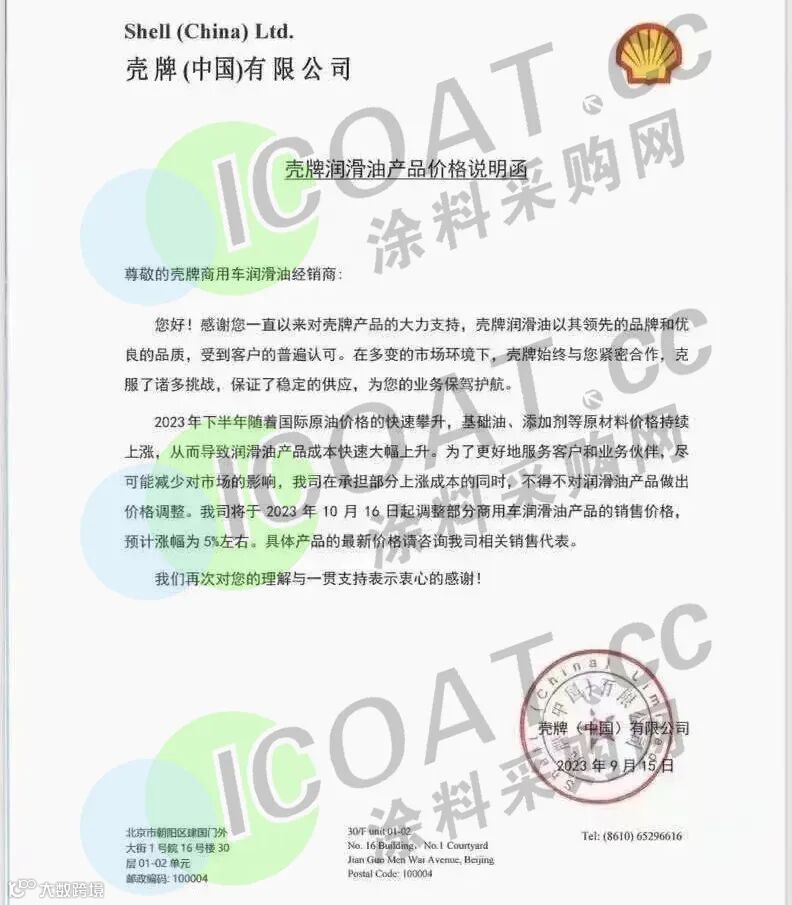 近日,胜牌、壳牌和突破润滑油发布了关于调整润滑油产品价格通告,宣布对产品价格进行适度上调,涨幅为5%左右。