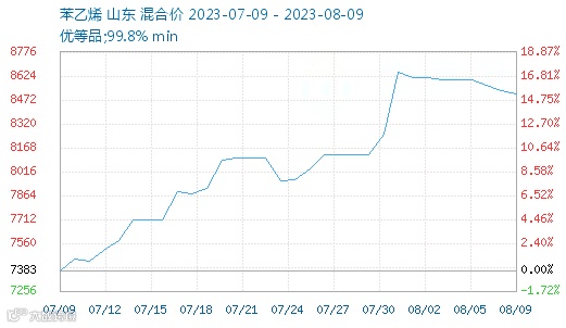 ▶▶苯乙烯:6连涨,累计上涨556.66元/吨,涨幅6.84%