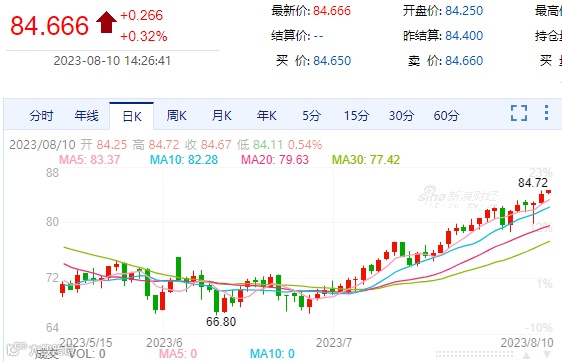 原油方面的涨势更为惊人,自沙特宣布自愿额外日均减产10万桶原油措施延长至9月,国际油价就已经“疯了”,据广化君统计,国际油价已经连续6周上涨,美油累涨近20%,布油累涨近17%,创下一年多以来“最长连涨周”!