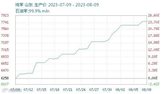▶▶纯苯:3连涨,累计上涨367.5元/吨,涨幅5.09%