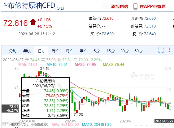 昨日,国际原油持续震荡,据新浪财经数据显示,WTI原油69.52美元/桶收盘,跌幅2.82%;布伦特原油收盘价为72.81美元/桶,跌幅1.71%。眨眼间,原油已经震荡一个多月了,眼看即将步入7月份,会迎来不一样的局面吗?