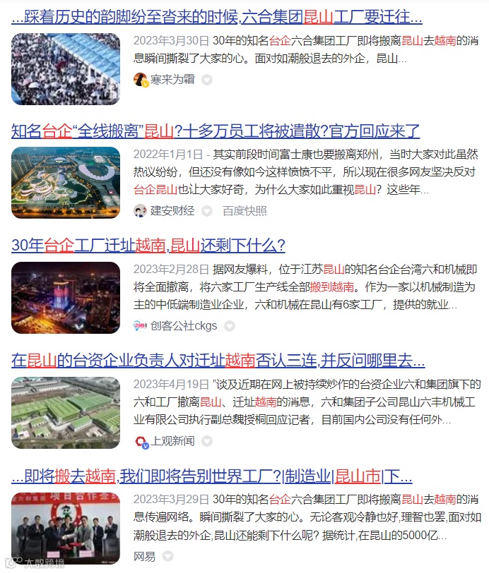 而后,六和集团子公司昆山六丰机械工业有限公司回应称,目前国内公司没有任何外迁打算,但对于“昆山用工等成本高”等问题并未否认。近几年大量外企撤离内地,港企、台企也出现了某种跟风的迹象。地缘政治的紧张已经让一些台厂开始转移生产设备到印度和越南,展开多元化布局,这些厂商主要是服务于西方消费电子品牌。