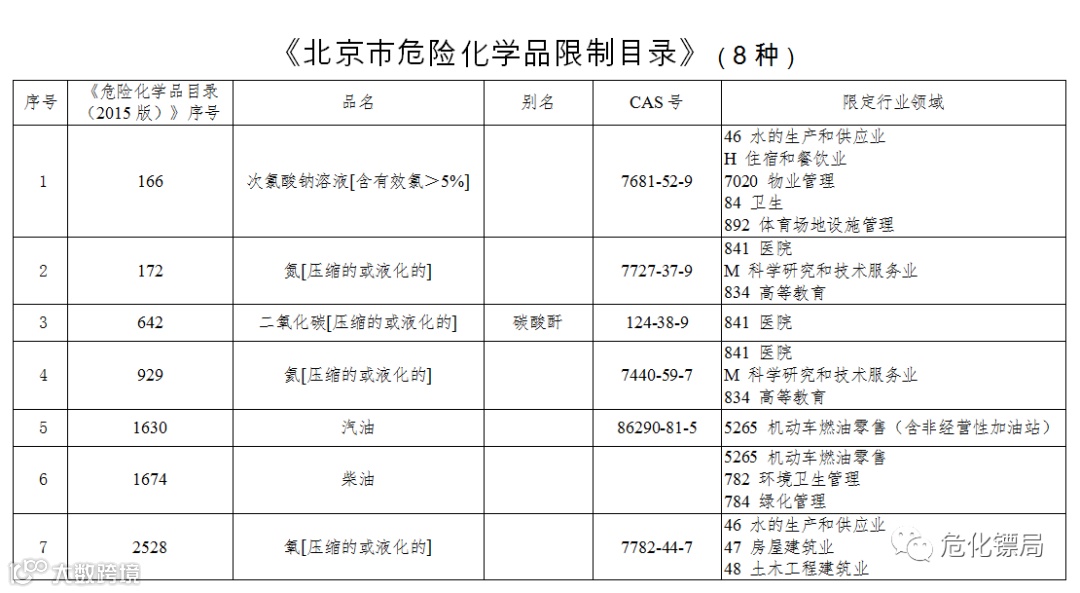 其中,首都功能核心区和城市副中心区域只允许这8类危化品在限定行业领域使用,并以特定的专用罐车、厢式货车或专用运输车辆的方式运输。未列入的其他危化品,可以符合要求的化学试剂包装和气瓶气体形式使用,并只可通过厢式货车运输。