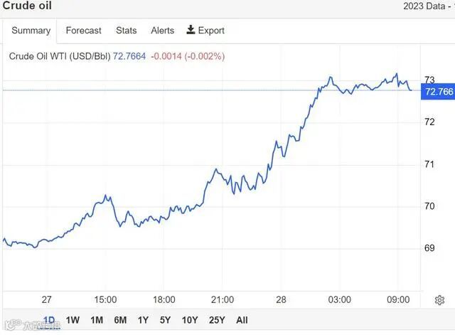 本周一,布伦特原油期货价格收涨3.13美元,至每桶78.12美元,涨幅4.2%。美国WTI原油期货收涨3.55美元,至72.81美元,涨幅5.1%。
