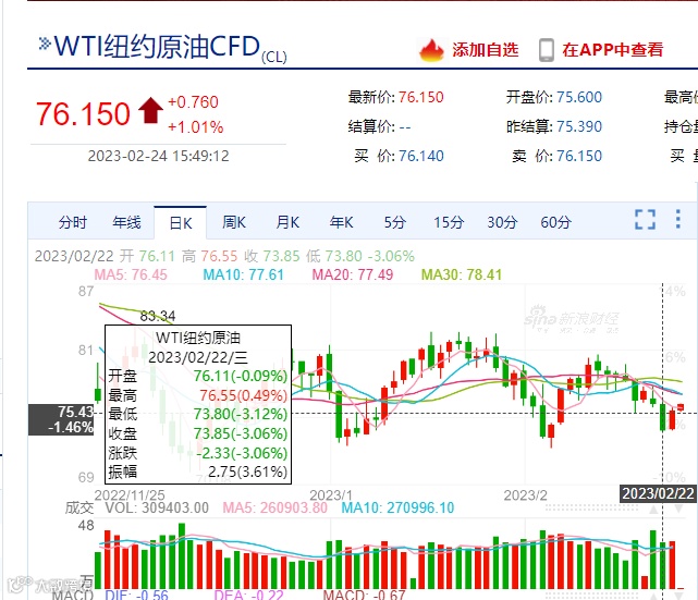 美国WTI原油期货主力合约结算价报73.95美元/桶,跌幅为2.41美元或3.2%。布伦特原油期货主力合约结算价报80.60美元/桶,跌幅为2.45美元或3.2%。
