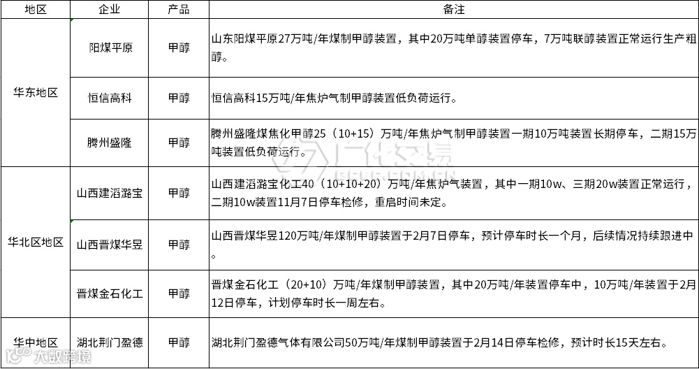 近期,国内甲醇装置多装置处于低负荷状态,部分装置预计2月中下旬开启检修,检修时间1-2周不等。