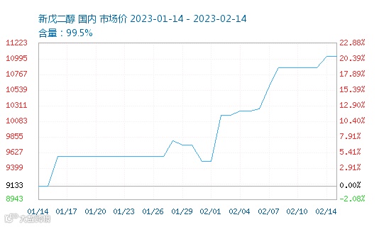 新戊二醇近期涨势惊人,据生意社数据结果显示,新戊二醇自今年来已经上涨1900元/吨,现报价11000元/吨,部分像万华化学新戊二醇报价较高,为12300-12500元/吨左右。
