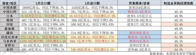 1月出口两位数集体暴跌