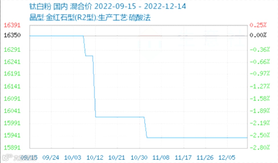 钛白粉目前报价15933.33元/吨,较年内高值下跌5066.67元/吨,同比跌幅达24.13%。