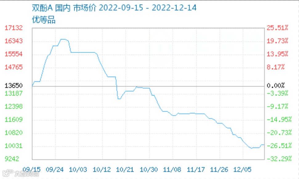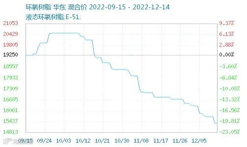 近期环氧树脂价格下跌明显,12月14日环氧树脂价格为15333元/吨,价格已经较10月初下跌5000元/吨,同比更是跌幅达41.31%,接近腰斩!