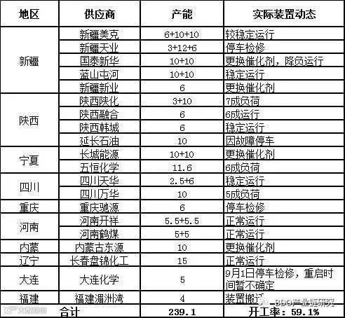 陕西延长10万吨装置、新疆天盈15万吨装置重启失败,后续开车时间待定;