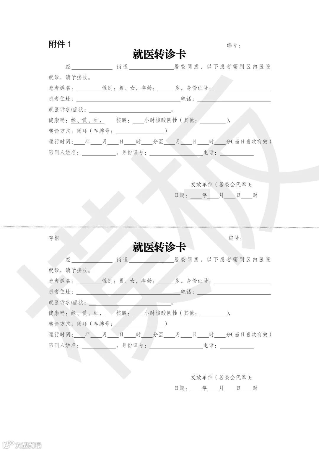 附件:1.就医转诊卡
