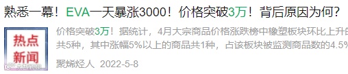 EVA怎么了?4月还是16000,现在价格已经来到了14000元/吨附近,月内跌幅超12%,现货跌超2000元/吨。去年EVA价格突破3万的辉煌还历历在目,如今如此惨淡,何止腰斩,简直是“抄家”!