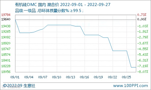 中秋节后,有机硅DMC市场交投气氛清单,下游以观望为主,山东大厂下调报价后,其他工厂跟随下调。截止发稿,9月27日,鲁西化工、东岳化工报价17800元/吨。由于终端需求不及预期,山东大厂继续降价,自9月1日-27日,下调1440元/吨,跌幅为7.33%。
