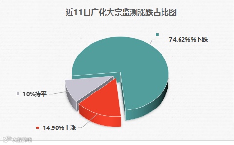 自7月以来,广化监测的化工产品一直处于跌多涨少态势,截止7月11日,共50种产品出现下跌,其中跌幅最大的产品为液氯,跌幅高达48.24%,上涨产品仅10种。