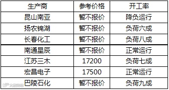丙酮周初4875元/吨,周末小幅下跌4850元/吨,跌幅0.51%。上周酚酮工厂开工率下降,货源减少,报盘尚有支撑,市场坚挺运行。