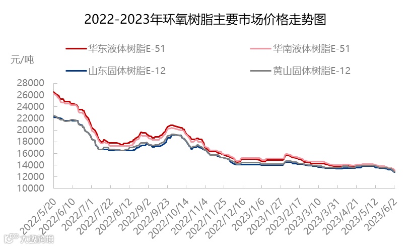 近日,环氧树脂重心疲软,市场价格连续探底,目前已跌至近年来最低水平。原料双酚A延续阴跌,树脂成本支撑不足,终端需求仍难见起色,需求利空影响下,场内悲观情绪仍浓厚。