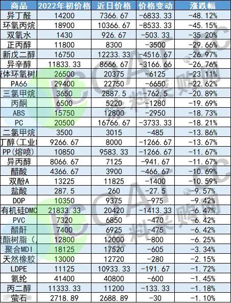 大跌8000元/吨!价格腰斩!化工品跌幅榜来了!