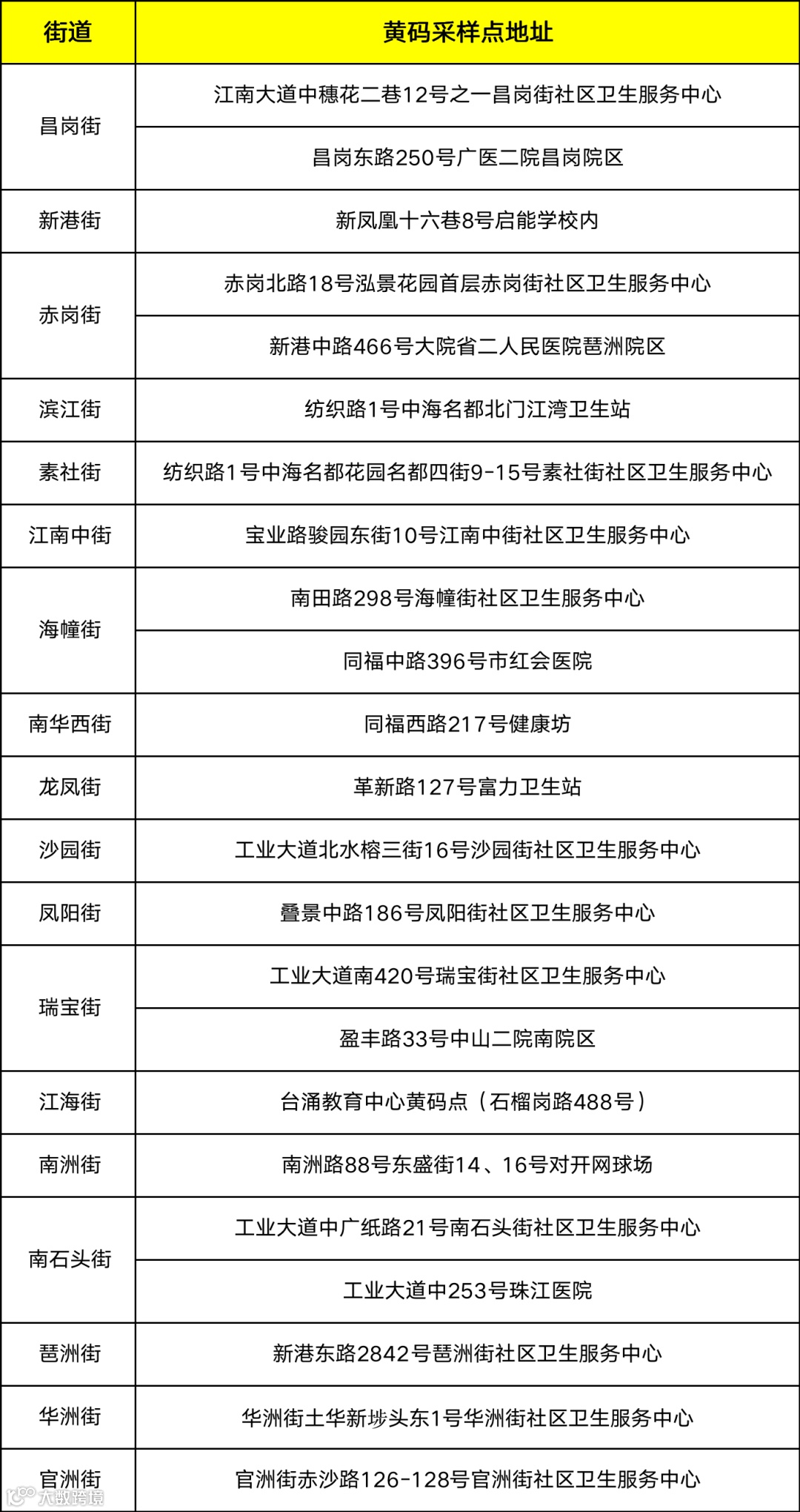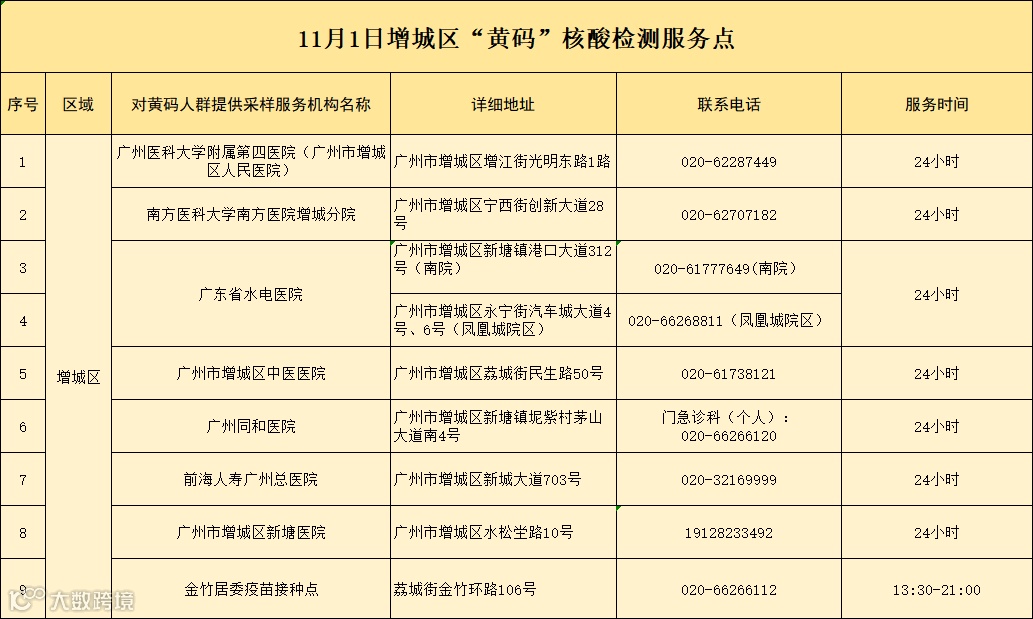天河区“黄码”核酸检测服务点一览表