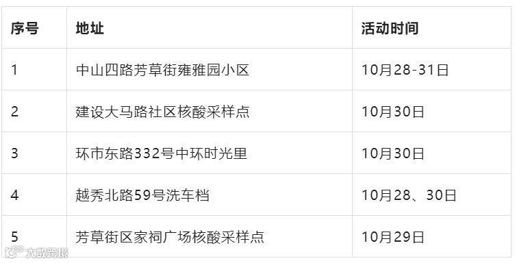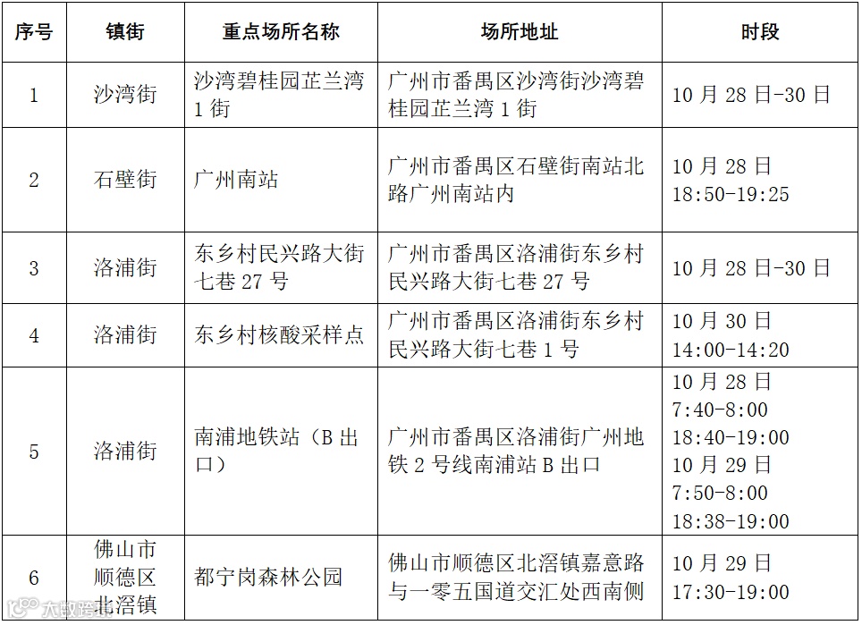 因新冠疫情防控需要,请在相关时段到过越秀区下述重点场所的人员,立即向所在社区联系报备,严格落实“3天3检”,并配合做好疫情防控各项措施。若不如实申报,不落实防控措施,造成严重后果的,将承担相应法律责任。