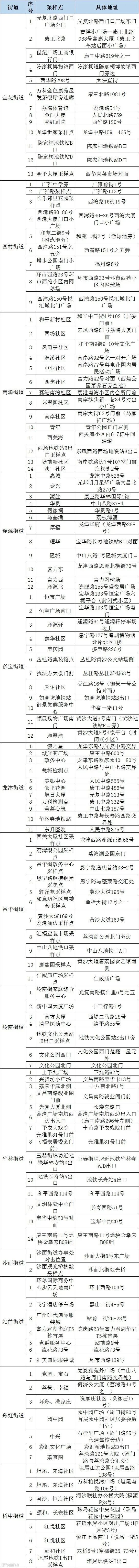 天河区全员核酸检测点一览表