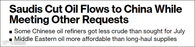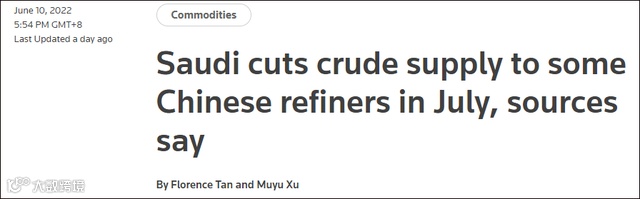 据观察者网报道,6月10日,几名知情消息人士透露,沙特阿美7月份将减少对中国原油供应。