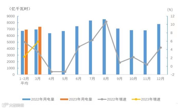 《2023年中国电力供需形势分析报告》显示,全社会用电量为约9.33万亿千瓦时(1千瓦=1度电),同比增长约8%,全国电力供需将平衡偏紧,局部地区高峰时段电力供需紧张。