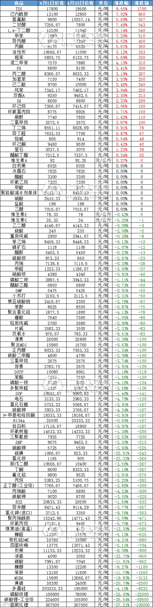 1、TDI(+9.55%),报价19500元/吨,较月初上涨1700元/吨;